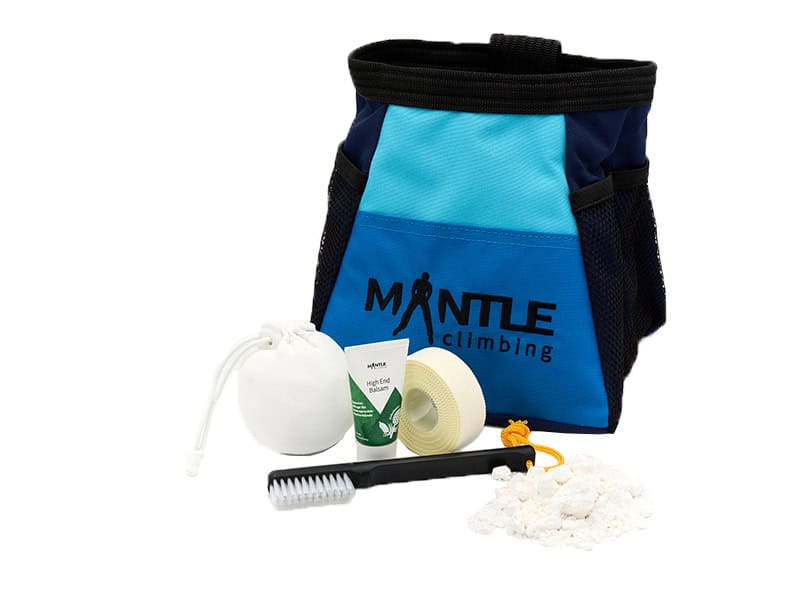 - Im praktischen Set mit den Mantle Produkten Chalball refill, 2,5x10cm Tape, Boulderbrush & High End Handbalsam